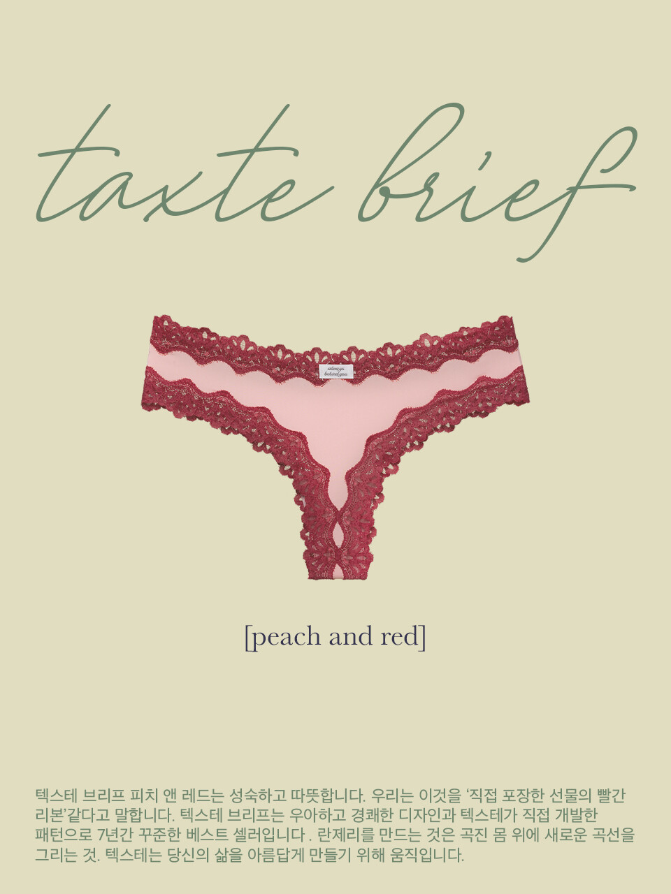 텍스테 브리프는 티팬티와 치키팬티 라인의 중간 라인으로 엉덩이 라인을 가장 예쁘게 보이도록 만들어주는 새로운 패턴 라인입니다. 평소 팬티 라인이 신경쓰이지만 티팬티가 불편했던 분들에게 추천드리는 제품입니다. 기존의 티팬티나 치키팬티와는 달리 순면 40수의 원단을 국내 팬티라이너가 붙을 만큼 넓고 길게 덧대어 여성의 부담감을 최소화하였으며, 고무줄 밴드 대신 레이스와 봉제법을 사용하여 장골 쓸림이 없으며 팬티 라인이 드러나지 않습니다. 텍스테는 모든 여성이 자기 체형의 아름다움을 발견하기를 응원합니다.